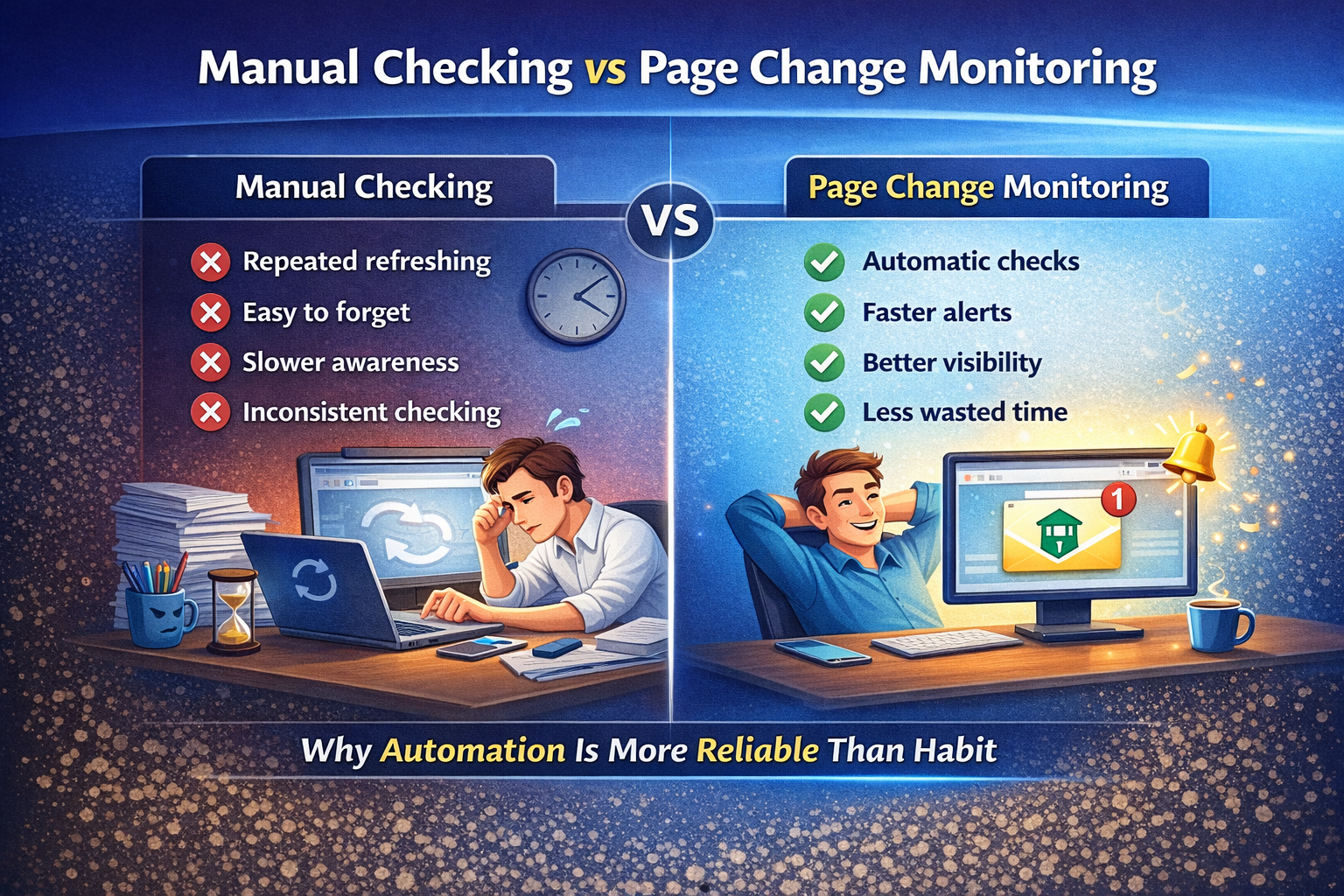 You start watching more pages. More changes matter. More timing matters. More decisions depend on updated information. Suddenly, manual checking is no longer simple. It becomes inconsistent. It becomes easy to delay. It becomes easy to forget.
